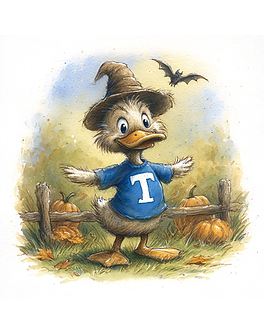 Turbo waddled into the pumpkin patch tonight and came face-to-face with a tall scarecrow with a crooked grin. For a moment, he thought it moved — quack!!! But being a brave little duck (well… mostly), he gave it a wave and carried on.